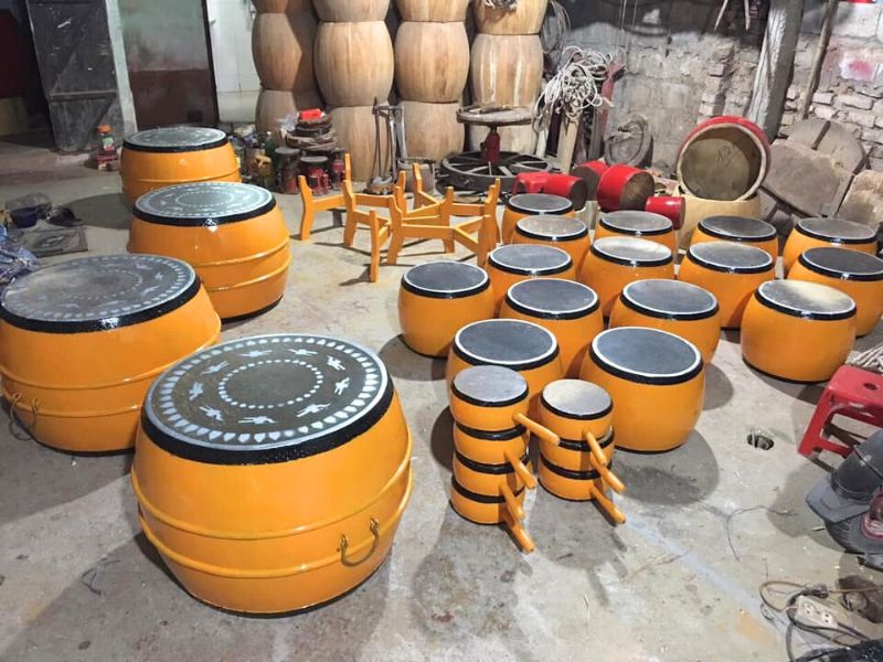 👉 Các sản phẩm trống tại đây chủ yếu làm từ gỗ mít và da trâu, đảm bảo độ bền và âm thanh chuẩn