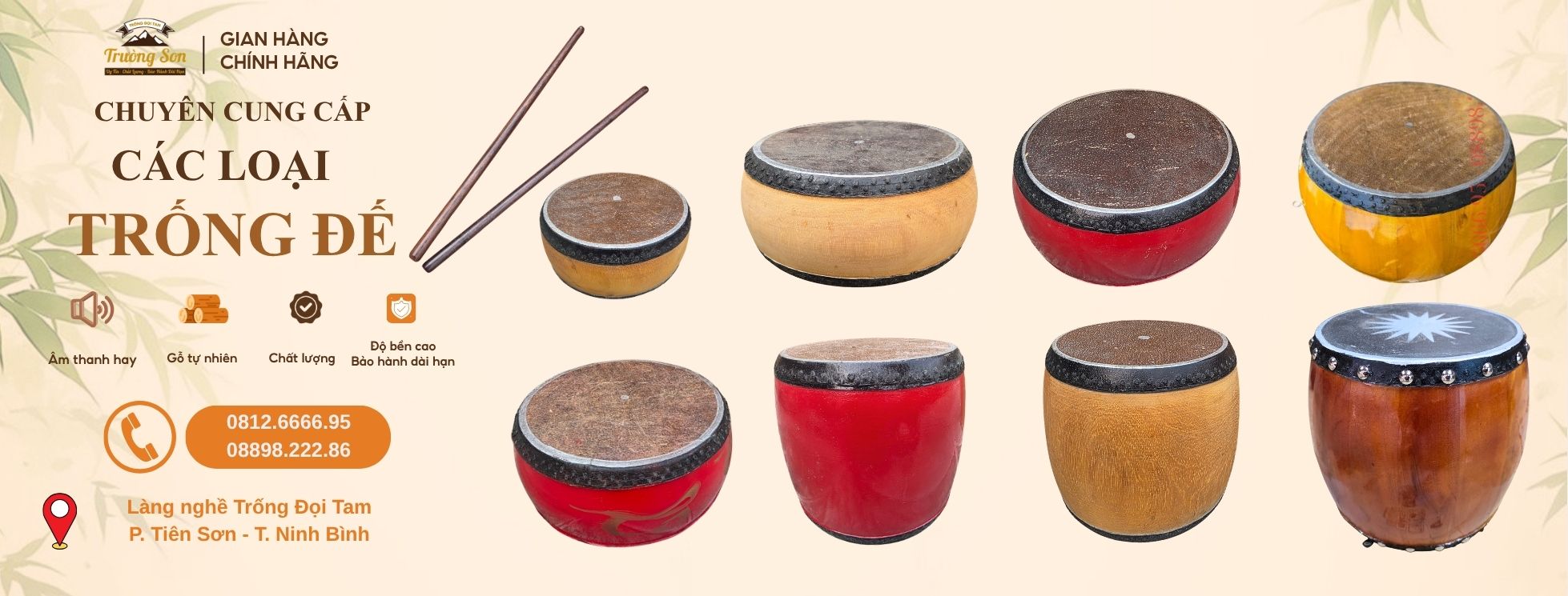 Khi lựa chọn trống cúng, trống đế, trống khẩu, trống hát văn, điều quan trọng không chỉ là giá mà còn là chất lượng âm thanh và giá trị tâm linh. Trong đó, trống làm tại Trường Sơn được nhiều khách hàng tin chọn.